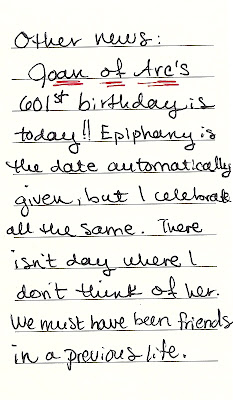 Today is a phenomenal, once-in-a-century occasion. Today, the 6th of January 2012, is the six-hundredth anniversary of the birth of Joan of Arc. Born in 1412, she would die at nineteen, burned at the stake by her English enemies. Hers is a story that has endured the centuries, one that had inexplicably become personal to this humble writer. Despite the ways in which we have misconstrued and misunderstood her, we still remember her better than many figures of our own more "enlightened" age.